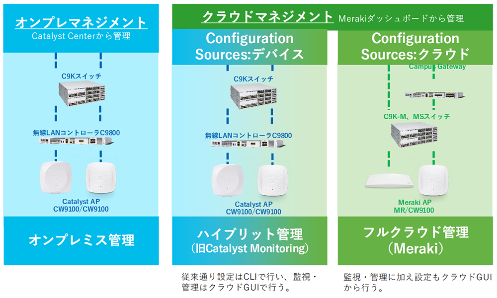 ✔ Catalystシリーズのスイッチ・WLC/APがMerakiダッシュボードで管理可能に