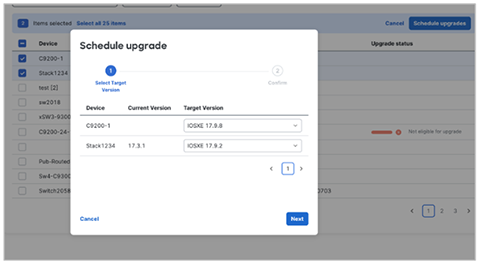 IOS-XEのUpgrade作業を、ダッシュボードから一括で可能。数クリックで作業完了
