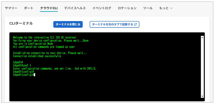 クラウドマネジメント デバイス設定モードでは、ダッシュボードから設定コマンドも実行できるようになったため、遠隔地の設定変更や障害対応の作業をリモートで実施可能です